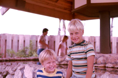 We really wanted to give Stephen a page for himself so here it is... You know a lot regarding him from his Herbie webpage and from other pages within this site, but I guess as parents, we always have more that we can add. Originally, Stephen didn't want to come into this world in that his mother was in labor for over 26 hours and even though induced, he still resisted and had to be pulled with forceps to make his grand entrance. Because of his size, 10.5 lbs and the delivery, he was born with swelling of the brain which more than likely caused his disability. We didn't really realize the disability until around his first birthday as he was still not walking or saying anything. As time went on, he still didn't start walking until around 18 months and didn't say a word until after 2 1/2 years of age. It was funny, however, when he did start talking. My wife would read to him constantly and one day as we were driving into town, Stephen started off saying the alphabet from A to Z and with each letter he would say an animals name. But that wasn't the end of it, he then went from Z to A and used a different animal for each letter. You can only imagine the shock! And today, he hasn't stopped talking yet., He actually has a vocabulary better than most grown adults, the problem is that he just has problems putting his thoughts together to carry on a conversation. Other than that, the kids a genius. Stephen's always been a happy child as you can tell from some of the pictures on this page. He loves animals and doing just about anything. During his younger years as I was doing a tremendous amount of traveling, we were fortunate enough that we could take the boys along with us. Actually I was working out of Michoud LA when his younger brother was born and it was at that time that they formed a very special bond. They have always gone with us where ever we went and for that reason, still stay extremely close today. Stephen's travels include a number of trips around the US, Canada, Mexico, Europe and the Caribbean. He has seen the Louve in Paris, the Coliseum in Rome, and so much more. All of these are memories that he remembers to this day. Back in 1990, we took up the hobby of scuba diving and Stephen became an expert Advanced Diver making numerous dives to the ocean floor at depths up to 125 feet. He loved to explore wrecks and even swim with the sharks. This became a little more difficult after his bout with MRSA, but within 6-9 months, he was back in the water and diving once again. And of course, there came along Herbie, his favorite car in the entire world. We started off with an old worn out '65 VW and as I started to add certain features such as opening and closing his hood automatically, he started to come alive for Stephen. Well today, his car is one of a kind as you have probably seen on his webpage (see the bottom of this page for a link). Herbie actually has a brain (a Pentium processor) that allows him to put on shows for kids and adults around the country along with his friends Bo, Daisy and Duke. And just recently, we have completed a tow vehicle for Herbie which is a '72 VW Kombi bus with a Chevy Blazer frame and 4.3 L V6 motor where we can continue to take Herbie to his shows in comfort (Click Here). Herbie sits on his custom red trailer and enjoys the ride wherever we go. One of Herbie's last appearances was in Little Rock, AR where he was center stage among over 25 General Lee's from the Dukes of Hazard TV series. Stephen had a ball (the General being his second favorite car in the world) and actually had the opportunity to meet Rick Hurst (Cletus), Sonny Shroyer (Enos) and John Snider (Bo Duke) from the original show. Of course he does the annual Toy's for Tot's campaign with a local TV station in Orlando, FL for the US Marines, and guest appearances around the area including just down the street from Walt Disney World where people come from around the world to see Herb in action (we have people come back on a regular basis hoping to catch Herbie at the show). All in all, Stephen loves life and it shows. The last pictures in this group are of Stephen at his brother's wedding where he of course was the Best Man, even to the point of giving him last minute advise as to how to have a wonderful marriage with plenty of children....